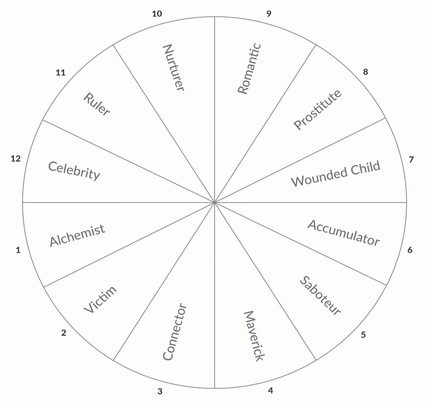 And that dance floor is circular and split into 12 segments. And where your archetypes choose to boogie will influence whether they’re in “har-money” (light) with each other, flying high to a fast tempo jive, or, causing chaos (shadow), head-banging to thrash metal and shoving each other about.